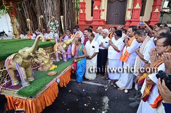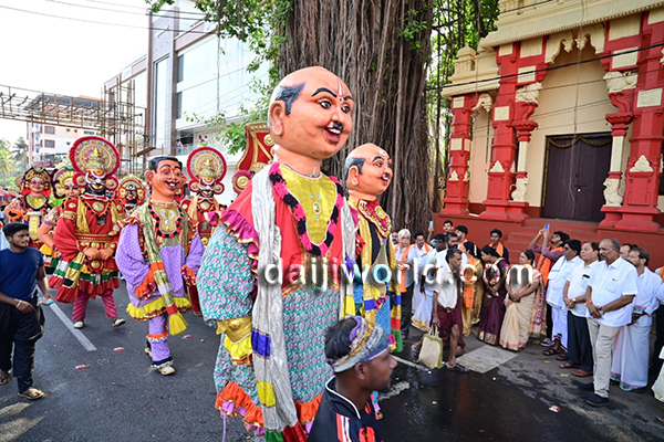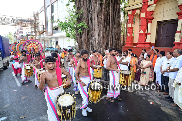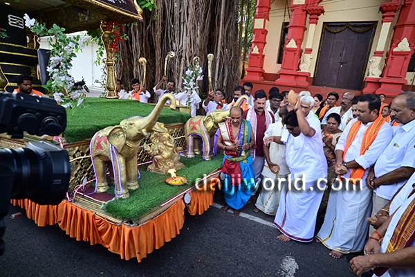 Dr G Shankar, proprietor of Shamili Group of Institutions and honorary advisor of the Brahmakalashotsava committee, flagged off the procession and conveyed his best wishes. The religious rituals were performed by chief priest P Vasudeva Upadhyay.