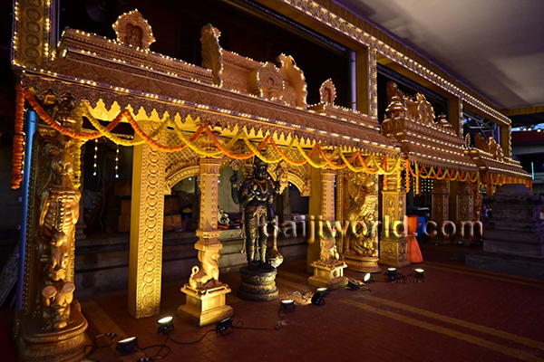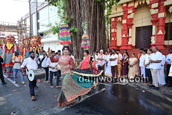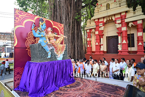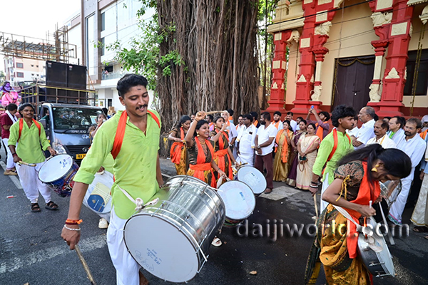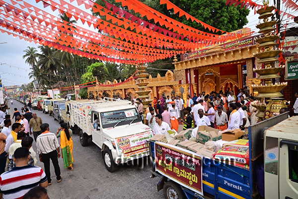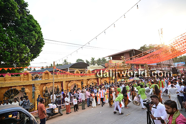 The colourful procession began from Jodukatte and proceeded via Service Bus Stand road before reaching the temple premises, where the offerings were ceremoniously submitted.