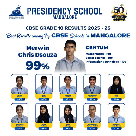 Mangaluru, Apr 16: Presidency School, Mangaluru, achieved commendable results in the grade X board examinations 2026, reaffirming its commitment to academic excellence and holistic education.