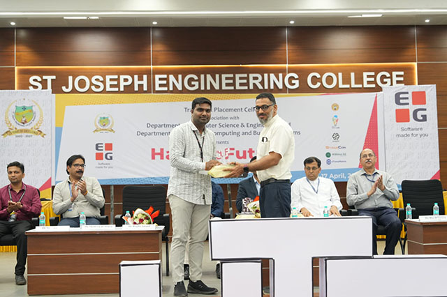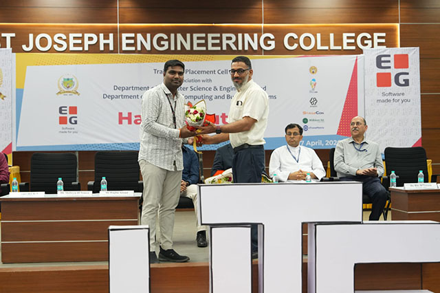 The event was inaugurated by Jeevan D’Souza, senior HR head & country lead, EGDK India, in the presence of Dileep Chakravardan, team manager, EGDK India, and Raghu Anand, global head of technology learning & development/training, EG A/S. The programme was also graced by Fr Wilfred Prakash D’Souza, director, SJEC; Fr Kenneth R Crasta, assistant director; and Dr Rio D’Souza, principal, SJEC, along with programme convenors Diana Monteiro and Dr Shrisha H S.