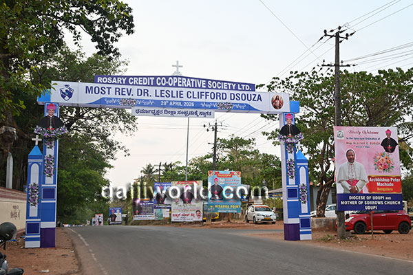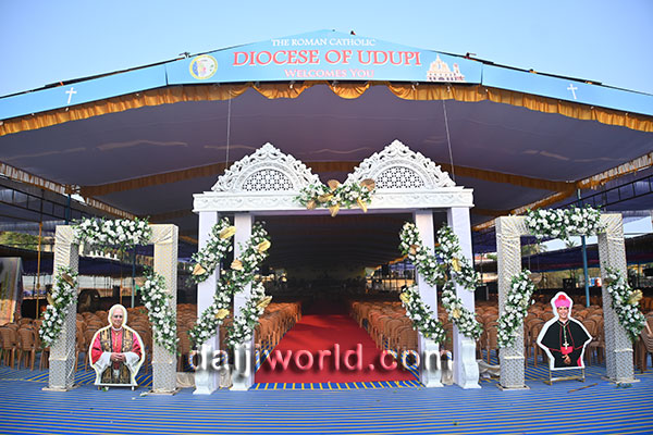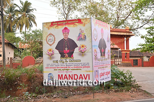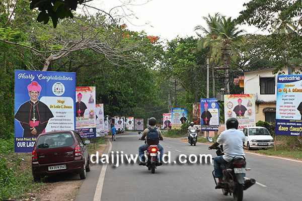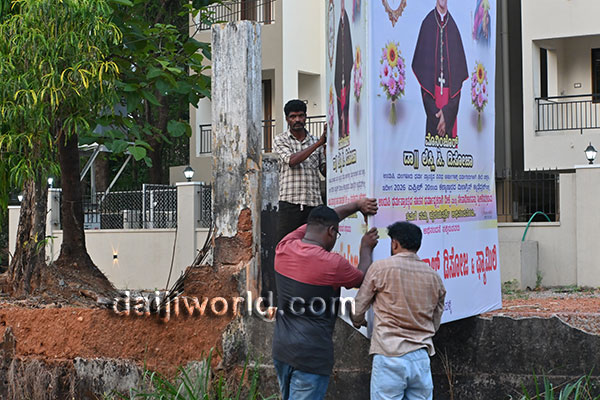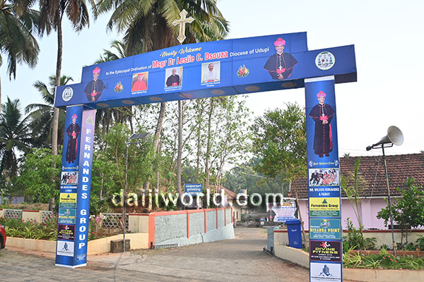 The route from Santhekatte bus stand to the Milagres Cathedral premises has been beautifully decorated with large welcome arches and congratulatory banners. The main stage is fully prepared for the solemn ordination and installation ceremony, which will be conducted alongside the Holy Eucharistic celebration. Around 35 bishops are expected to be present on stage, followed by a public felicitation programme at the same venue.