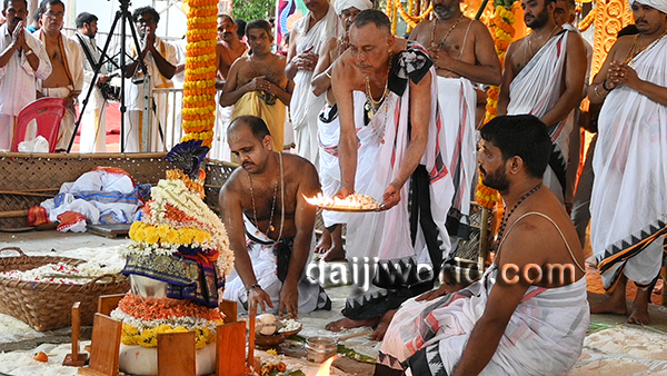 The sacred rituals were conducted under the guidance of P Shashikanth Tantri, in the presence of chief priest P Vasudeva Upadhyaya. A series of religious ceremonies including Parikalasha Abhisheka, Kalanyasa, Maha Pooja, and Palla Pooja were performed with devotion and adherence to tradition.