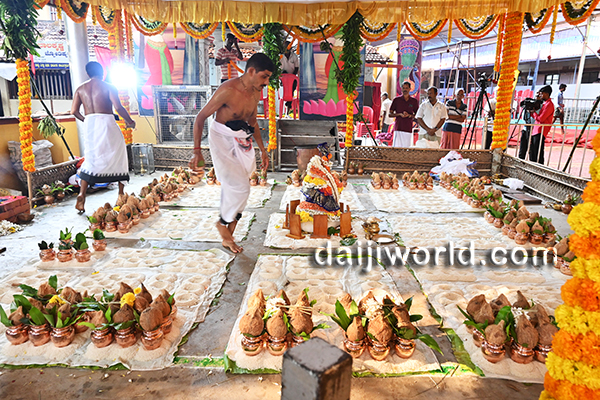 Udupi, Apr 20: The Ashtabandha Brahmakalashotsava of Bannanje Sri Mahalingeshwara Temple was held with traditional religious fervour on Monday, April 20, drawing a large number of devotees from across the region.