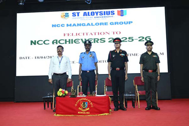 The ceremony was hosted by the NCC Mangalore Group. The programme was graced by esteemed dignitaries including the chief guest Air Commodore SB Arunkumar, VSM, deputy director general, NCC directorate Karnataka & Goa and Dr Melwyn D’Cunha SJ, pro vice chancellor of St Aloysius (Deemed to be University).
