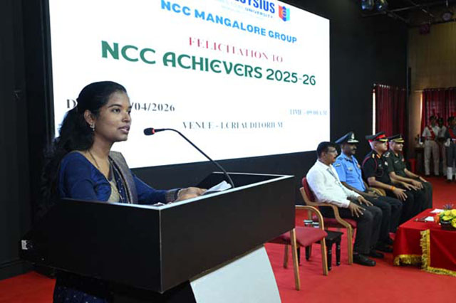 Mangaluru, Apr 21: A grand felicitation ceremony was held to honour the exemplary efforts of the NCC cadets of the Army, Navy, and Air Force Junior and Senior Wing, who have shown remarkable dedication and discipline in representing the Karnataka & Goa Directorate on April 18 in the LCRI Hall of St Aloysius (Deemed to be University). The event recognized the participation of these cadets in the prestigious National level camps, where they showcased their talent, hard work, and leadership skills. The ceremony also celebrated the involvement of the cadets' parents, who were present to witness their children's achievements and share the pride of their success.