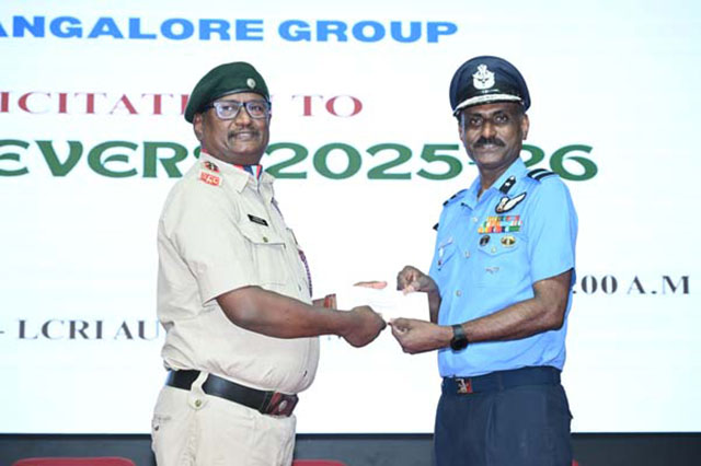 A motivational speech was delivered by Air Commodore SB Arunkumar, VSM, deputy director general, NCC Directorate Karnataka & Goa who inspired the cadets to continue their journey of excellence and to strive for greatness in all their future endeavors. Air Commodore SB Arunkumar emphasized the importance of discipline, hard work, and patriotism as fundamental qualities that would lead them to success. He also acknowledged the crucial role played by the parents in shaping these cadets into the disciplined and focused individuals they are today.
