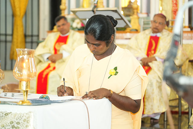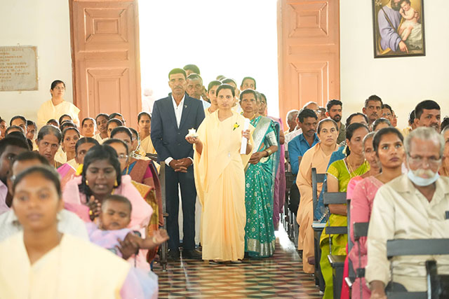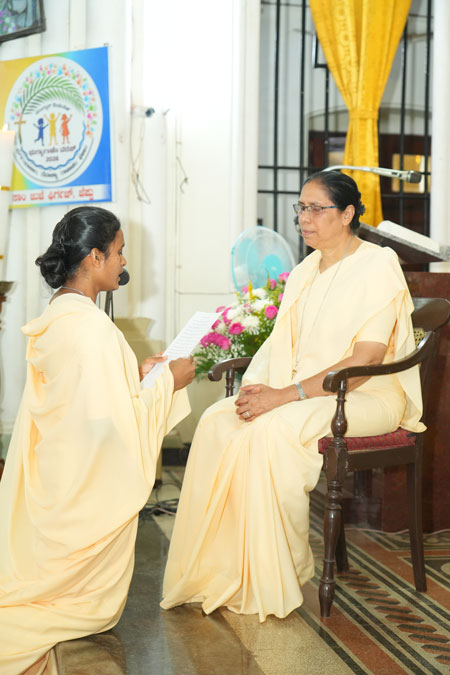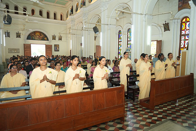 In a solemn act of consecration, the sisters committed themselves totally to Christ through the evangelical counsels of chastity, poverty, and obedience. The profession took place in the presence of Superior General Sr Milly Fernandes, sisters of the congregation, priests, family members, and collaborators.