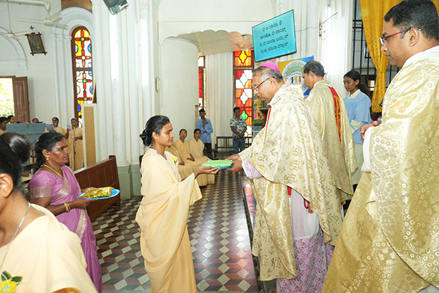 The Eucharistic celebration was officiated by Bishop of Mangalore diocese Dr Peter Paul Saldanha, along with 12 concelebrants. In his homily, the bishop reflected on the depth of this lifelong commitment, emphasizing that it requires both courage and grace. Drawing from the Gospel, he spoke about four types of love: parental love, philia (friendship), romantic love, and agape (the selfless love of Jesus). He stressed that just as Jesus offered himself completely, the sisters too are called to surrender their whole being to him alone.