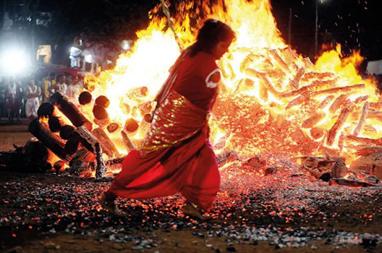 A key ritual began after the lighting of the homkhund, the large ceremonial pyre, around late night. Devotees known as dhonds, who undertake the traditional fire-walking ritual in honour of the goddess, began moving towards the embers after midnight.