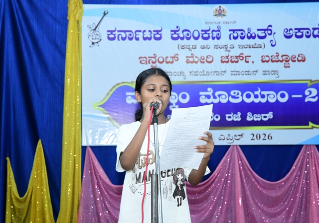 Parish priest of Infant Mary Church, Bajodi, Fr Dominic Vaas, addressing the children, emphasized that the responsibility of preserving and promoting the Konkani language lies with the younger generation. He urged them to speak the language regularly and strengthen its usage.