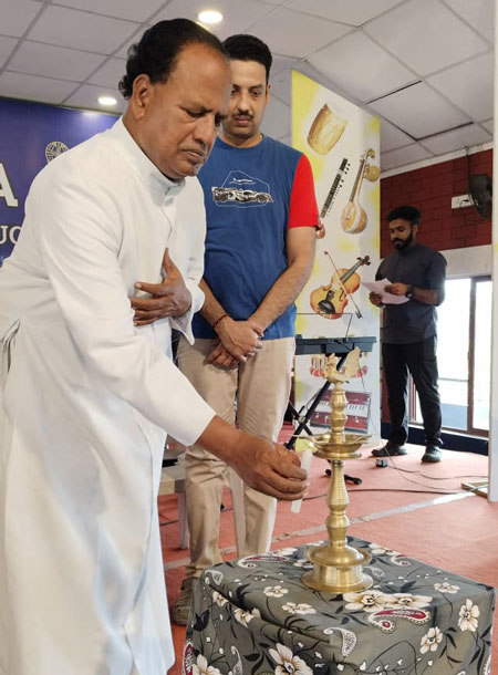 The programme began with a prayer song followed by the lighting of the lamp, symbolising the spirit of knowledge and creativity. In his welcome address, Fr Sudeep Paul MSFS, director of Sandesha Foundation, warmly greeted the gathering and highlighted the vision of Sandesha as a charitable institution committed to nurturing young talents irrespective of their economic background. He noted that the camp was designed not only to teach musical skills but also to foster confidence, creativity, and teamwork among children.