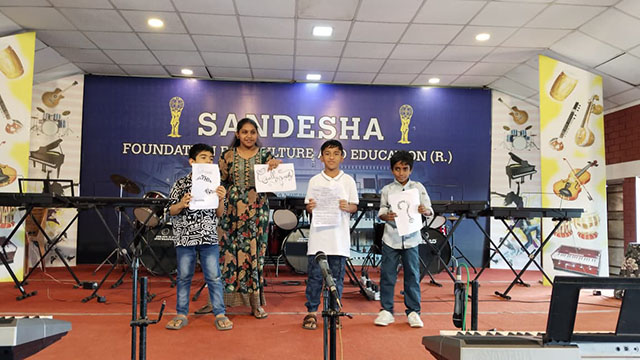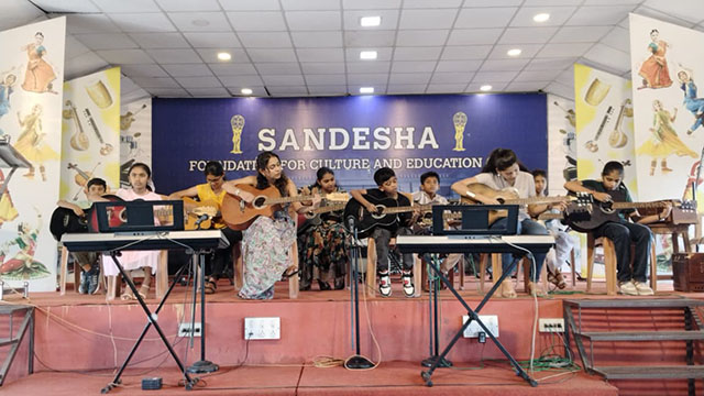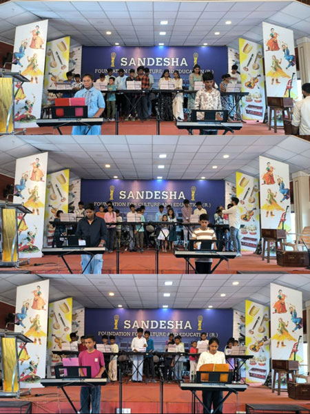 Appreciating the trainers and teachers, he said that teaching music and art is not simply about imparting skills but about nurturing confidence, creativity, and joy in young hearts. He also praised the Sandesha Foundation for its inclusive mission, pointing out that the institution provides opportunities for children from both rural and urban backgrounds, irrespective of their financial status, to discover and develop their talents.