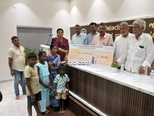 On the occasion, a total assistance of Rs 5.40 lac was handed over to his wife Hamsavalli. The amount included Rs 1.50 lac from Mangaluru Coastal Minority Fishermen Primary Cooperative Society, Rs 1.50 lac from the Fresh Fish Traders Association, Rs 1.20 lac collected from fisheries workers, Rs 1 lac contributed by workers Siyab, Babu and Meeran, and Rs 20,000 personally contributed by deputy director Revathi.