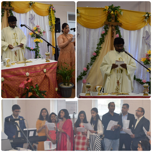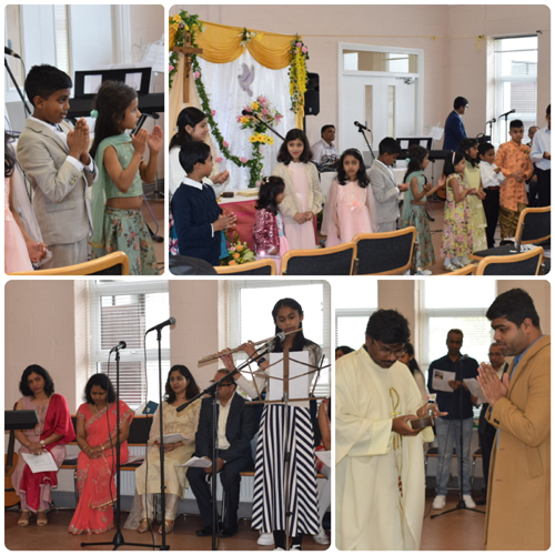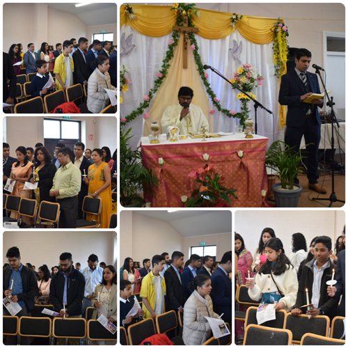 The event started with a Holy Mass celebrated by Fr Suresh. He performed the sacred ceremonies of Blessing the Fire and Holy water and gave a beautiful homily in his Easter message. The Holy Mass had a melodious choir. It was a great joy to see the youth coming forward to showcase their talents in the choir with Aviv Machado and Hazel Prabhu on the piano and Avrit Machado on the flute.