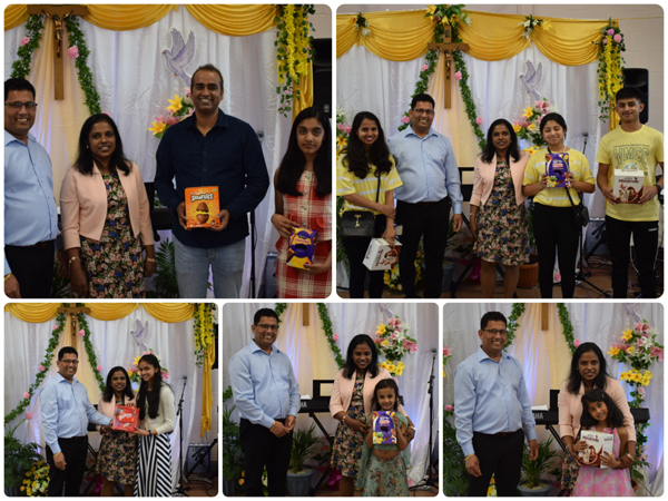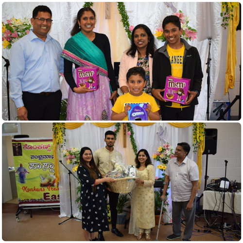 After the performances, a sumptuous spread of Indian food by Industhan foods was waiting to satisfy everyone’s taste buds. The kids had their Easter egg hunt and were very happy to carry so many sweets home from their hunt and for their performances. There were many spot games like guessing the correct number of Easter eggs, etc., followed by a round of Housie and the Easter raffle draw. Prabhu Marian and Agnes Prabhu distributed the prizes to the winners of the competition and performers of the day.
