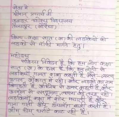 In the letter, the boys studying in class 7 wrote that they would like the girls to apologise to them for calling them names.