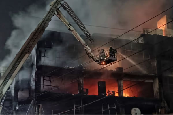 Delhi Fire Service chief Atul Garg told IANS that they received a call about the incident at 4 p.m. from a building located near Pillar No. 544 in Mundka in west Delhi, after which 10 fire engines were immediately pressed into service.