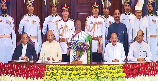 She started her speech by greeting people and said, "I humbly greet all the fellow citizens from this sacred Parliament, a symbol of the hopes, aspirations and rights of all the citizens of India. Your affection, trust and support will be my greatest strength in discharging my functions and responsibilities."