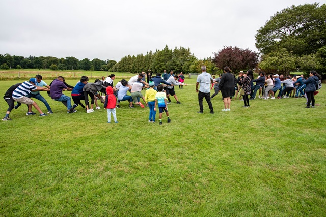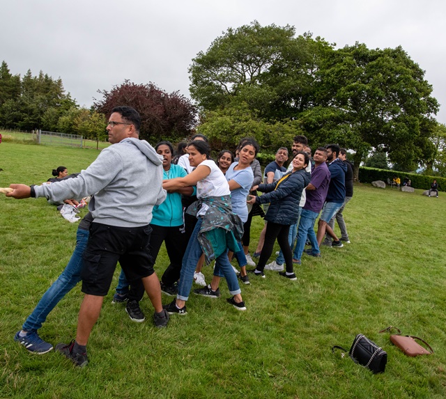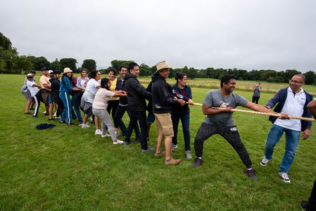 After burning all calories, it was time to recharge. Delicious lunch was organised by get-together committee. To digest the lunch, they started the Tug of War. Kids, ladies and gents all enthusiastically participated in the Tug of War. Trophies and medals were distributed to all the winners.