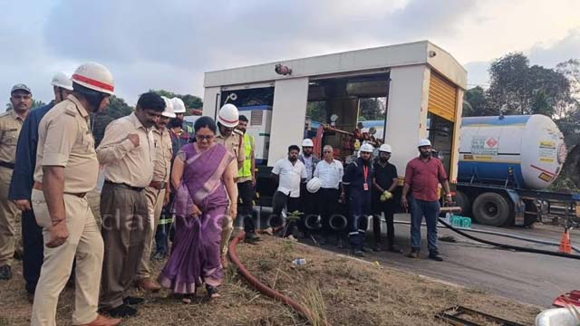 Udupi: LPG shifting from toppled tanker at Katapady to continue past midnight