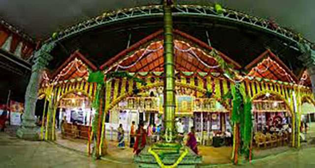 Bangaraja proved a worthy successor to Veerabahu. He ruled his kingdom on Tulu Nadu well and brought glory and fame. On a certain night while he was sleeping Goddess Mangaladevi appeared in his dream and revealed to him that at the spot where Netravati and Phalguni (Gurpura) rivers converge there is a mound under which lay the remains of a celestial shrine. Mother Goddess asked him to install the Shivashakthi Linga and the Dhara Patra in a shrine which was newly built. Then, she further indicated that arrangements should be made for the regular worship in the temple. She promised him that these services would bring him and his kingdom glory and happiness. This is the early mythology of the original temple and worship of Goddess Mangaladevi at this spot.