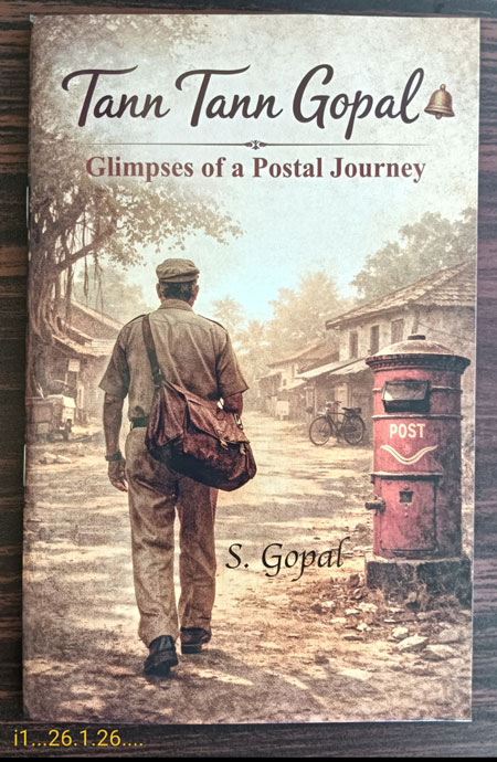 Postal officials of the past generally have a definite leaning towards literature and writing and have published several captivating accounts of experiences for posterity, many interested never fail to admire them. One latest unassuming book by Mangaluru based retired enthusiastic octogenarian official is Mr.S.GOPAL. Let us proceed to savour the thrill of his simple book narrating down to earth book and be motivated to read the book and enjoy its contents and know some things about the postal scenario in times recently gone by while a new AI era is looming ahead ! A captivating small book of 160 pages it projects selected memories in a spell binding effort, very readable now, can captivate the joy of readers who enjoy real (apart from reel) life stories of their own environments and happy reading that jogs the memory and enhances knowledge and information levels. This simple but power packed book is what is needed in this hi-fi era, when reading books is fading and electronic stuff is taking over at every phase. The depth the Author Mr. S GOPAL has presented his memories avoiding unnecessary formalities, allowing the informal narration attractive to readers' experience and satisfaction. Title of Book : 'Tann Tann Gopal (English) , on sale at HPO Mangalore, Philatelic Counter.