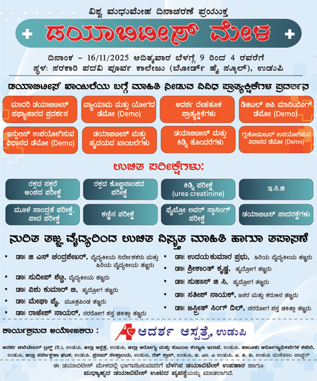 Title: Adarsha Hospital, Udupi - Diabetics Check-up Camp
