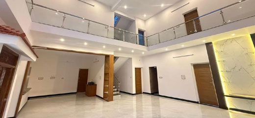 Every detail is meticulously crafted : Premium materials, a sky lit hall, vitrified flooring, teakwood doors, stylish glass railings, all interiors with modular kitchen. Natural light streams through large windows by day, while stunning ambient lighting transforms every night. Lush gardens, generous backyard and front yard, ample parking, and water from every source provide utmost convenience.