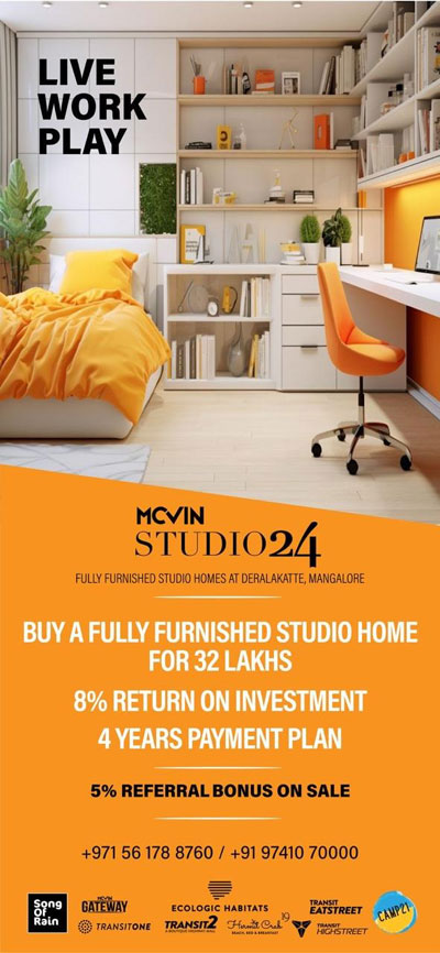 • Fully furnished studio home for Rs 32 lakhs in Mangalore