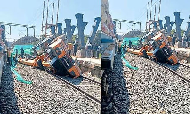 Crane overturns onto tracks at Subrahmanya Road rly station, operator hurt