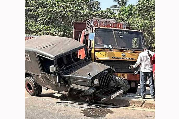 ಮಂಗಳೂರು: ಚಾಲಕನ ನಿರ್ಲಕ್ಷ್ಯ- ಜೀಪಿಗೆ ಲಾರಿ ಡಿಕ್ಕಿ