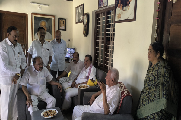 ಬಂಟ್ವಾಳ: ಬಿ.ಜನಾರ್ದನ ಪೂಜಾರಿ ಮನೆಗೆ ಭೇಟಿ ನೀಡಿದ ವೀರಪ್ಪ ಮೊಯ್ಲಿ