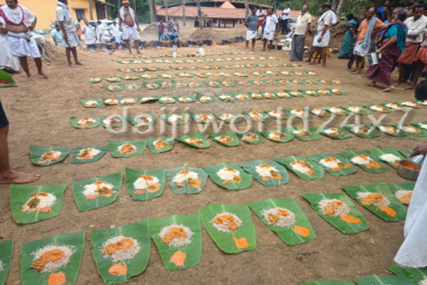 ಬಂಟ್ವಾಳ, ಜ. 12 (DaijiworldNews/TA) : ಮಾಣಿ ಗ್ರಾಮದ ಗ್ರಾಮ ದೈವಕ್ಕೆ ಸಂಬಂಧಪಟ್ಟಂತೆ 1001 ಗಣಗಳಿಗೆ ‘ವನಭೊಜನ’ ಕಾರ್ಯಕ್ರಮ ನಡೆಯಿತು. ಅನಾದಿಕಾಲದಿಂದಲೂ ನಡೆದುಕೊಂಡು ಬಂದಂತೆ ಮಾಣಿ ಶ್ರೀ ಉಳ್ಳಾಲ್ತಿ ದೈವದ ಮೆಚ್ಚಿ ಜಾತ್ರೆಯ ಮೊದಲು ಮಾಣಿ ಗ್ರಾಮದ ಉಳ್ಳಾಲ್ತಿ ದೇವಸ್ಥಾನದ ವಠಾರದಲ್ಲಿ ಹಾಗೂ ಅರೆಬೆಟ್ಟುವಿನಲ್ಲಿ ಒಂದೇ ದಿನ ವನಭೊಜನ ಕಾರ್ಯಕ್ರಮ ನಡೆಯುತ್ತದೆ.