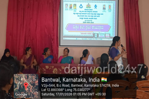 ಬಂಟ್ವಾಳ, ಜ.18 (DaijiworldNews/TA): ಬಿ.ಸಿ.ರೋಡಿನ ಶ್ರೀ ಶಕ್ತಿ ಭವನ ಇಲ್ಲಿ ಮಹಿಳಾ ಮತ್ತು ಮಕ್ಕಳ ಅಭಿವೃದ್ಧಿ ಇಲಾಖೆ ಶಿಶು ಅಭಿವೃದ್ಧಿ ಯೋಜನೆ ಬಂಟ್ವಾಳ ಜಿಲ್ಲಾ ಸಬಲೀಕರಣ ಘಟಕದ ಸಂಯುಕ್ತ ಆಶ್ರಯದಲ್ಲಿ ಬೇಟಿ ಬಚಾವೋ ಬೇಟಿ ಪಡಾವೋ ಯೋಜನೆಯಡಿ ಕಿಶೋರಿಯರ ಬಲವರ್ಧನಾ ತರಬೇತಿ ಕಾರ್ಯಕ್ರಮ ನಡೆಸಲಾಯಿತು.