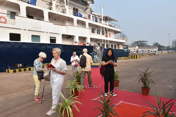 ಈ ಹಡಗಿನಲ್ಲಿ ಅಗಮಿಸಿದ್ದ ಪ್ರವಾಸಿಗರಿಗರು ಹಾಗೂ ಸಿಬ್ಬಂದಿಗಳಿಗೆ ಸಾಂಪ್ರದಾಯಿಕ ಸ್ವಾಗತ ಕೋರಲಾಯಿತು. ಹಡಗಿನಲ್ಲಿ 95 ಪ್ರಯಾಣಿಕರು ಮತ್ತು 70 ಸಿಬ್ಬಂದಿಗಳಿದ್ದರು. , ಅವರನ್ನು ಬಂದರಿನ ಕ್ರೂಸ್ ಟರ್ಮಿನಲ್ನಲ್ಲಿ ಸಾಂಪ್ರದಾಯಿಕವಾಗಿ ಸ್ವಾಗತಿಸಲಾಯಿತು.