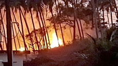 Moodbidri: Fire breaks out in coconut grove near Mahaveer College, extensive damage reported