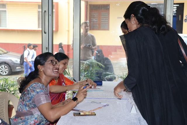 During the symbolic welcome, Prof Mathew C Ninan an eminent educationist and director of Little Rock Indian School, Brahmavar, was ceremoniously presented with a compass by a student—an emblem of wisdom, direction, and his enduring influence as an educational guide. He was accompanied by the principal, Sr Maria Sarika; the vice principal, Sr Meena Fernandes; and the coordinator, Sr Lavi Shanti.