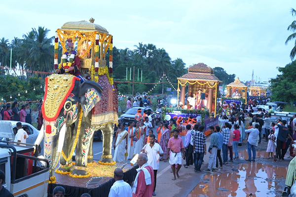The sacred rituals were led by chief priest Kukkikatte Ragavendra Tantri and priest Ragavendra Upadhyaya, who performed the mass Chandika Yaga and associated poojas. A mass prayer was conducted under the guidance of Nadoja G Shankar, while the idol of Goddess Mahalakshmi was specially honoured with a ceremonial offering atop a traditional Ambari.