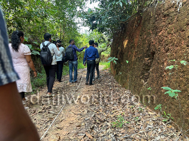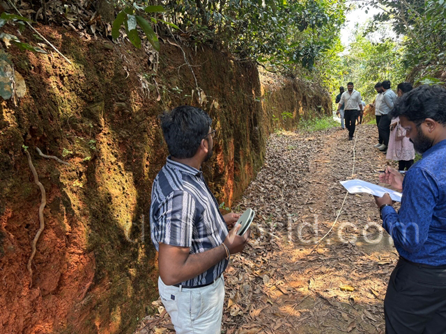The inspection team comprised Ullal taluk panchayat executive officer Gurudath, assistant executive engineer Nitesh from the zilla panchayat irrigation department, and panchayat development officer Ramya. The team visited the site around 2 pm on Thursday. Measurements were taken from the start to the end of the concretized road, from the road to the collapsed house, from the back of the house to the hill, and from the nearby stream to the hill behind the house.