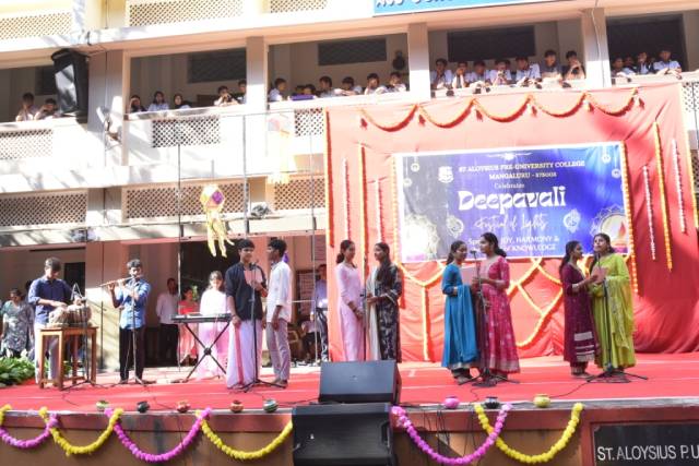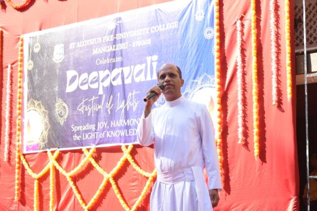 Mangaluru, Oct 19: The Centre for Inter-Religious Harmony encourages students to appreciate India’s rich cultural heritage, reinforcing the spirit of togetherness that also defines the ethos of St Aloysius Pre-University College. Celebration of Deepavali, the festival of lights, reflects the values of harmony, unity and shared joy that the college strives to promote.