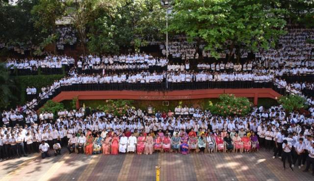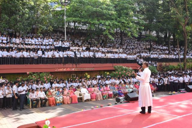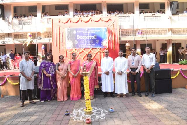 Addressing the gathering on the occasion, principal Fr Clifford Sequeira SJ, emphasised the importance of light in dispelling darkness and fear. He expressed the need to place love and service above all in these times, when darkness prevails in varied forms around us. Reflecting on the message of Jesus Christ to let one’s light shine among men, Fr Clifford urged the staff and students to be the light in the lives of others through small acts of kindness and by reaching out to those in need.