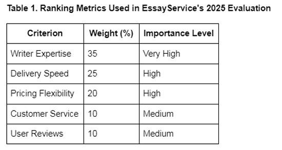 EssayService's 2025 data review ranked the most trusted essay providers in the U.S. based on transparency and verified user ratings: