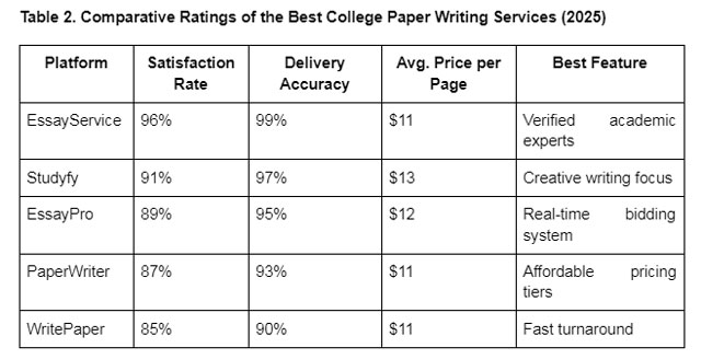 When it comes to credibility, EssayService continues to stand out as the best college paper writing service overall. The platform has maintained a 96% satisfaction rate, reflecting consistent quality and user loyalty.