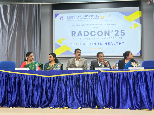 Mangaluru, Nov 11: The department of medical imaging technology, Srinivas Institute of Allied Health Sciences (SIAHS), Srinivas University, organized the RADCON’25 – National Conference in collaboration with the Indian Society for Radiation Biology (ISRB) on October 25 at Mukka campus, Mangaluru. The event, themed 'Radiation in health: Academic–Industrial interaction', aimed to bridge the gap between academic research and industrial innovation in the field of radiation sciences and healthcare.