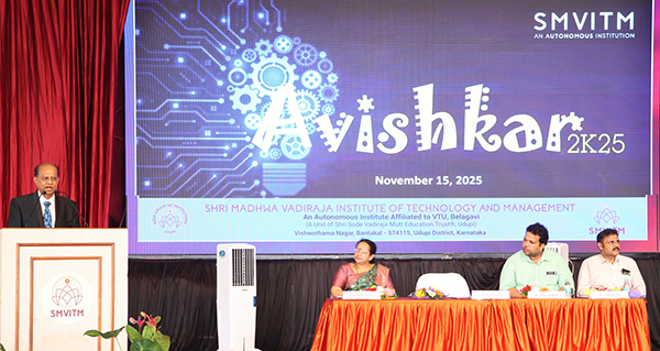 Udupi, Nov 18: The valedictory ceremony of Avishkar 2K25, organized by Shri Madhwa Vadiraja Institute of Technology & Management (SMVITM), Udupi, concluded with grandeur and enthusiasm. The multi-day convention showcased innovation, creativity, and talent from high schools, PU colleges, and institutions across the region.
