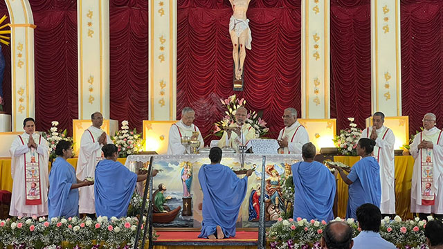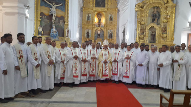 The solemn Eucharistic Celebration was presided over by Bishop Dominic Savio Fernandes, auxiliary bishop of the archdiocese of Bombay. Bishop Alex Dias bishop emeritus of the diocese of Port Blair, Fr Nazareth Fernandes, SFX, superior general of the Society of Pilar, Fr Stevan D Souza vicar general of the Society of Pilar, Fr Joaquim Rebelo, provincial superior of Goa Province, Fr Hilary Fernandes, incharge of vice postulation office, Pilar and Fr Joseph Fernandes, SFX, central delegate superior and other priests concelebrated the Mass.