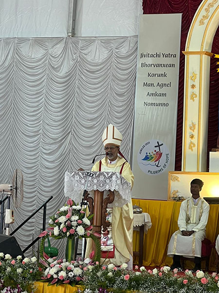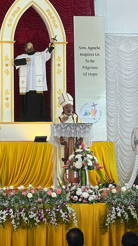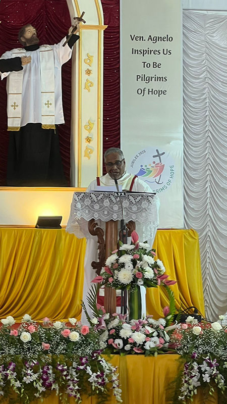 Delivering a homily on the theme 'Ven Agnelo Inspires Us to Be Pilgrims of Hope', Bishop Dominic Savio Fernandes invited the faithful to radiate the holiness of Venerable Agnelo to all. He expressed profound joy at the commemoration of the saintly priest, saying that the Church rejoices because God had blessed Goa with 'a priest of extraordinary holiness from its own soil'. He added that he rejoiced because 'Venerable Agnelo continues to inspire us through a life that still speaks—quietly, powerfully and beautifully'.