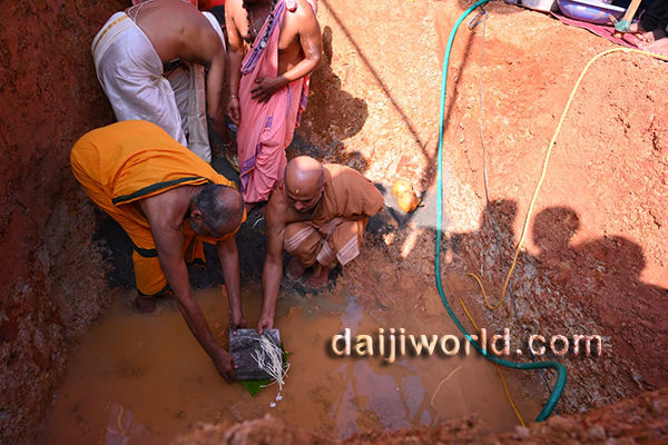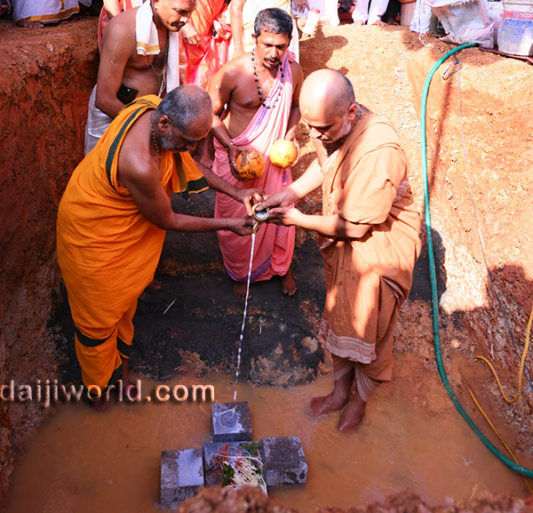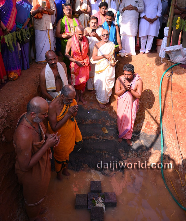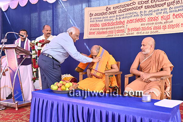 Udupi, Nov 27: The foundation stone for the construction of a mini hall and guest house ‘Punarvasu’ of Adamaru Math under the Sri Vibhudeshatheertha Memorial Charitable Trust (R), Udupi, was laid on November 27, with the blessings of Sri Vishwapriya Theertha Swamiji and junior pontiff Sri Eshapriya Theertha Swamiji of Adamaru Math.