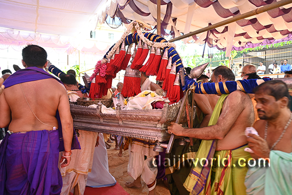 Swamiji further recalled the contributions of Vibhudesha Theertha Swamiji, stating that the concrete laid at Car Street by their Guru still remains strong, and appreciated the staff of the guest house, calling them “the pillars who always welcome guests with a smile.”