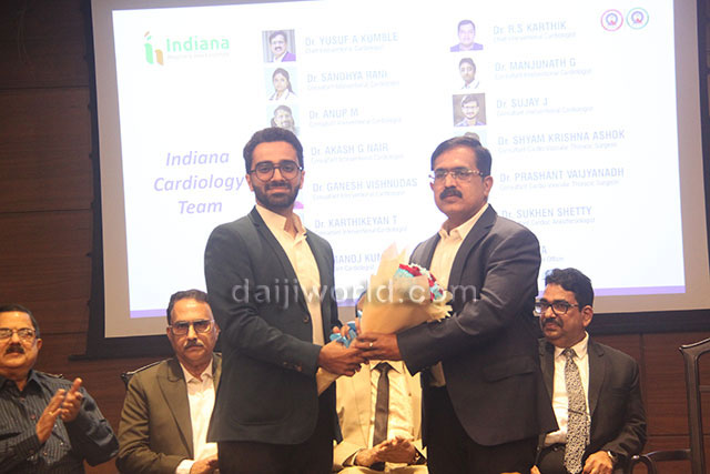 Key members of Indiana Hospital, including Prof Dr Ali Kumble, Dr Nihal Ali Kumble, Dr Apoorva Srijayadeva, and Dr Aditya Bharadwaj, were present.